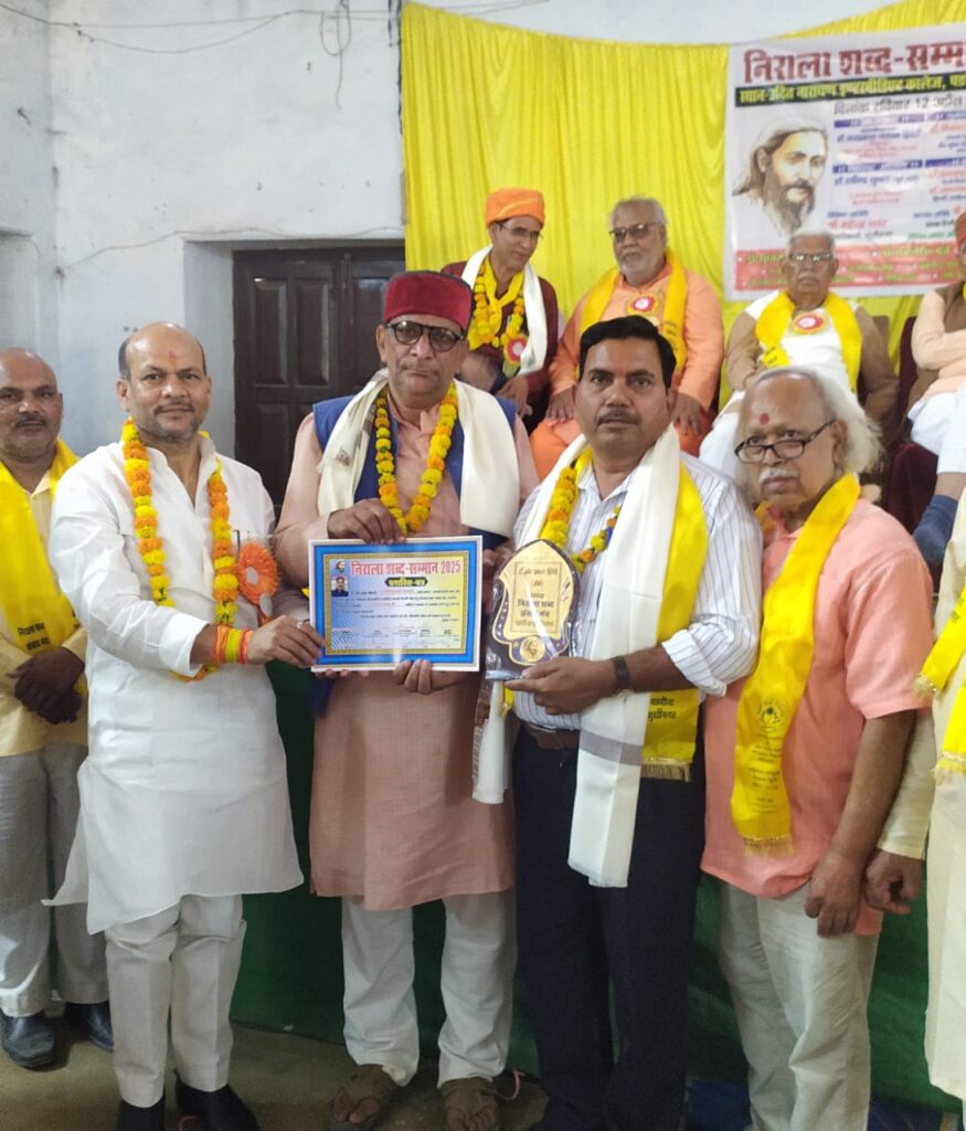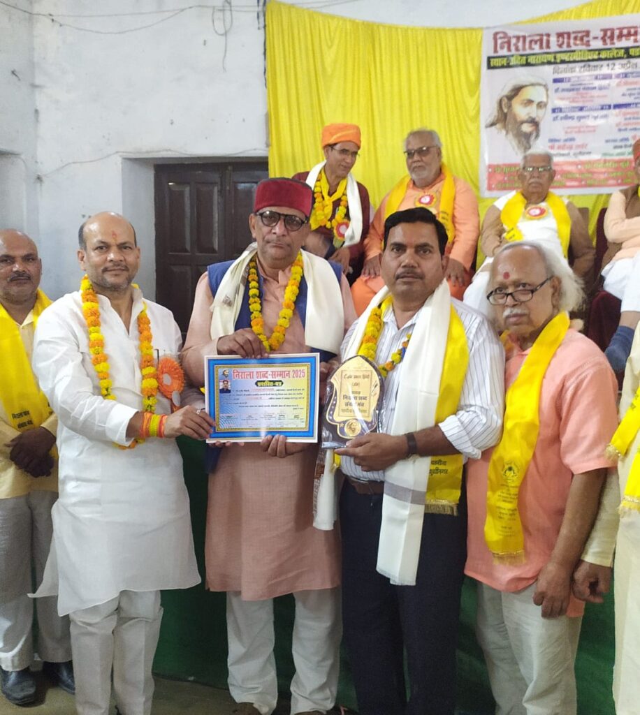 डॉ ओमप्रकाश द्विवेदी ओम के संयोजन एवं इंद्रेश बहादुर सिंह भदौरिया इंद्रेश रायबरेली की अध्यक्षता में 12 अप्रैल 2026 को पड़रौना (कुशीनगर) में आयोजित निराला शब्द सम्मान 2025 के अंतर्गत देश भर से आये हुए लगभग 150 से अधिक रचनाकारों ने काव्य पाठ किया था। पड़रौना के नगर अध्यक्ष विनय जायसवाल, काशी हिन्दी विद्यापीठ वाराणसी के कुल सचिव डॉ इंद्रजीत तिवारी ‘निर्भीक’ एवं डॉ सिद्धि नाथ शर्मा द्वारा रायबरेली काव्य रस साहित्य मंच रायबरेली समूह (भारत) के कवि एवं मीडिया प्रभारी/पत्रकार डॉ राम लखन वर्मा द्वारा उत्कृष्ट काव्य-पाठ के लिए “निराला काव्य श्री सम्मान 2025” से सम्मानित किया गया। अंगवस्त्र के रूप में शाल,प्रशस्ति-पत्र, फूलमाला एवं स्मृति चिन्ह प्रदान कर सम्मानित किया गया। कार्यक्रम संयोजक दा ओमप्रकाश द्विवेदी ‘ओम’, मुख्य अतिथि के रूप प्रो. डॉ बैद्यनाथ मिश्र जयप्रकाश विश्व विद्यालय छपरा (बिहार), डॉ शिवनाथ सिंह ‘शिव’ संस्थापक/अध्यक्ष रायबरेली काव्य रस साहित्य मंच एवं आचार्य महावीर प्रसाद द्विवेदी अंतर्राष्ट्रीय विश्व विद्यालय के कुलपति एवं अखिल भारतीय कलाकार परिषद एवं काशी हिंदी विद्या पीठ के कुल सचिव डॉ इंद्रजीत तिवारी निर्भीक द्वारा संयुक्त रूप से सभी रचनाकारों को सम्मानित किया गया।