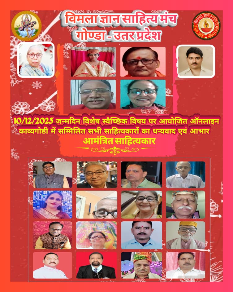 माता-पिता/ सास-ससुर की स्मृतियों को जीवंत रखने के उद्देश्य से अंजू श्रीवास्तव/ सुधीर श्रीवास्तव द्वारा स्थापित ‘विमला ज्ञान साहित्य मंच’ पर वरिष्ठ कवि साहित्यकार डा. शिवनाथ सिंह ‘शिव’ के जन्म दिवस (14 दिसंबर) को समर्पित आभासी जन्मोत्सव काव्य-गोष्ठी का ‘आयोजन 10 दिसंबर ‘2025 को किया गया। गोष्ठी अपराह्न 4.30 बजे से शाम लगभग 7.30 बजे तक निरंतर गतिमान रहकर भव्यता के साथ संपन्न हुई।